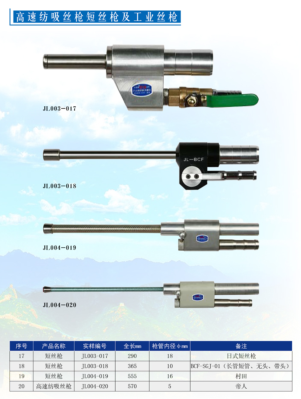 主營各種系列吸絲槍和各種規(guī)格快速插座、升絲拉桿為主。吸絲槍主要包括高速紡FDY、 POY、短絲槍、工業(yè)絲槍,包括紡DTY、加彈機(jī)系列。來圖來樣生產(chǎn)。