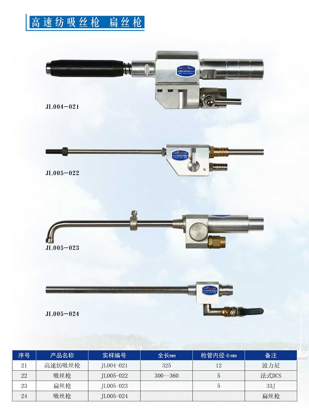 主營各種系列吸絲槍和各種規(guī)格快速插座、升絲拉桿為主。吸絲槍主要包括高速紡FDY、 POY、短絲槍、工業(yè)絲槍,包括紡DTY、加彈機系列。來圖來樣生產。