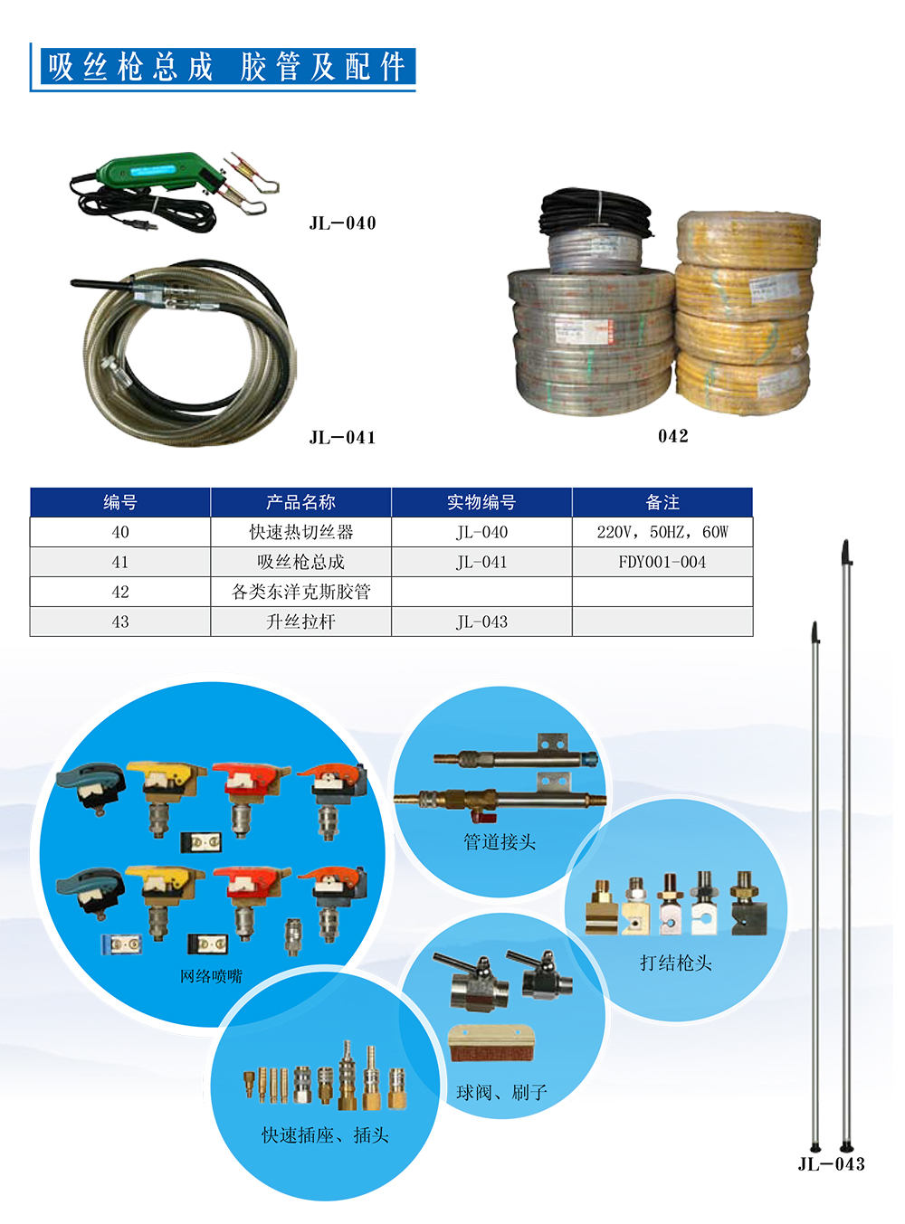 主營(yíng)各種系列吸絲槍和各種規(guī)格快速插座、升絲拉桿為主。吸絲槍主要包括高速紡FDY、 POY、短絲槍、工業(yè)絲槍,包括紡DTY、加彈機(jī)系列。來(lái)圖來(lái)樣生產(chǎn)。